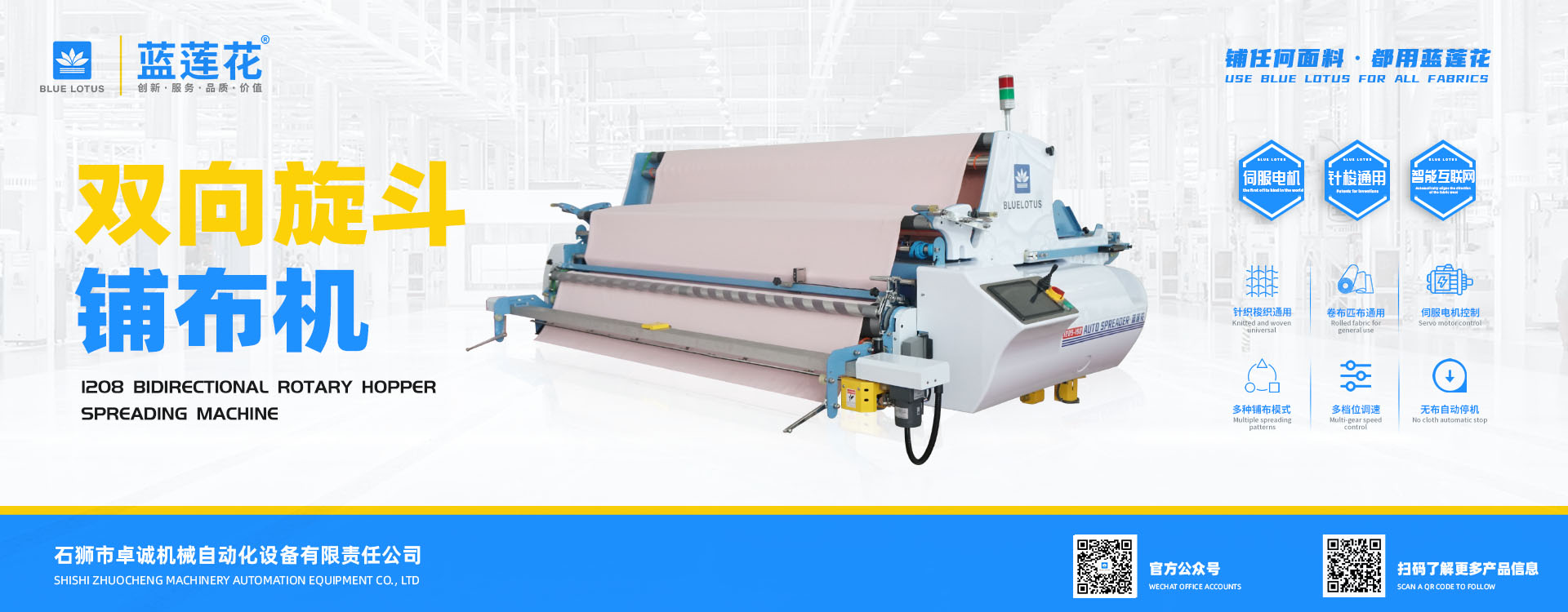 我司結合市場自主研發(fā)的藍蓮花品牌拉布機擁有多項自主專利技術,機器以小巧多功能易操作低維護為特點,為業界提供性價比機型。